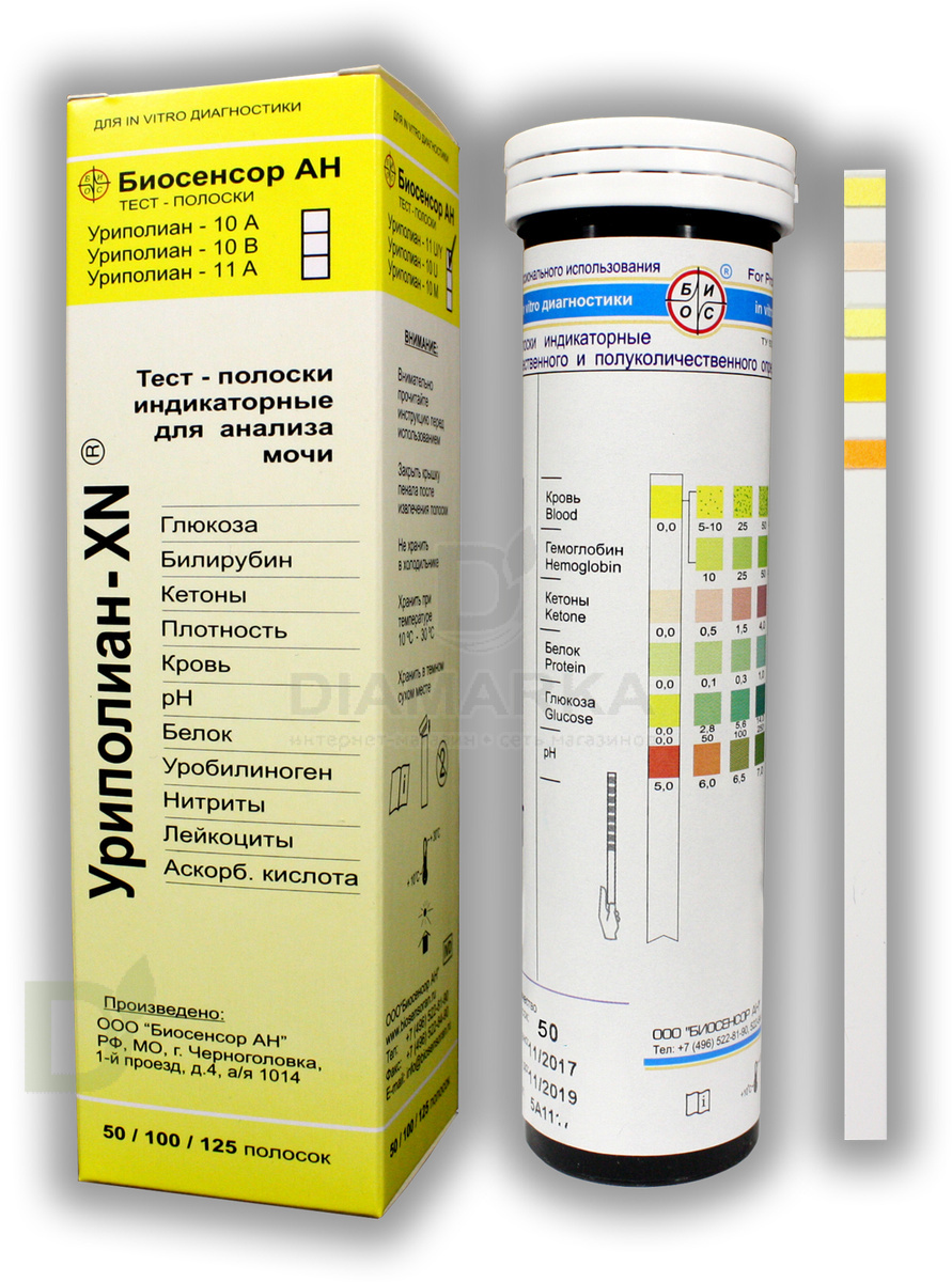 Тест-полоски визуальные Уриполиан-XN 11A № 100 для определения биохимических параметров в моче