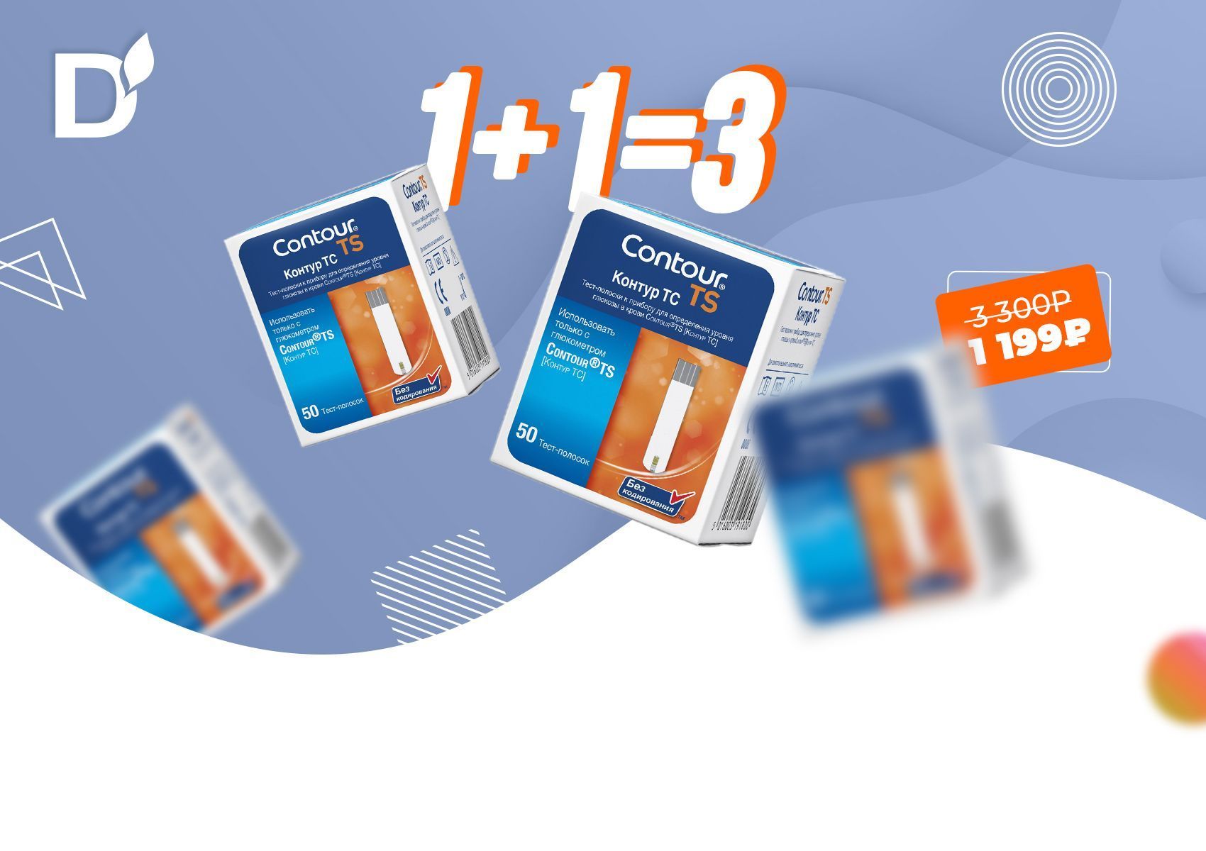 Пачка тест-полосок Контур ТС №50 бесплатно - в подарок за покупку!